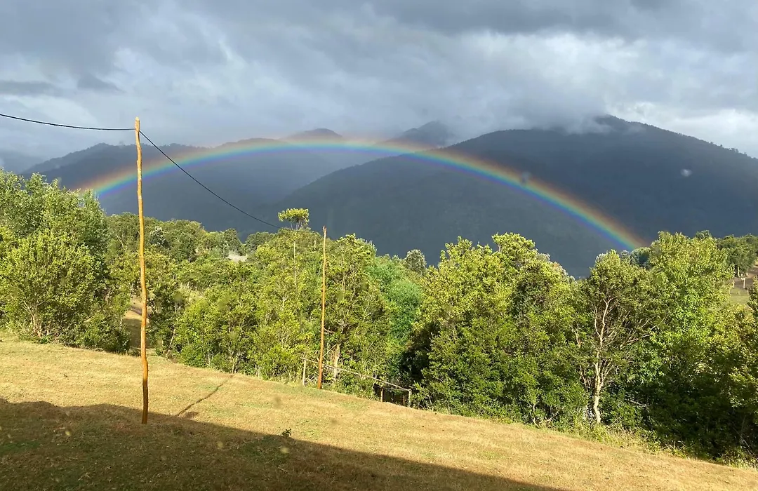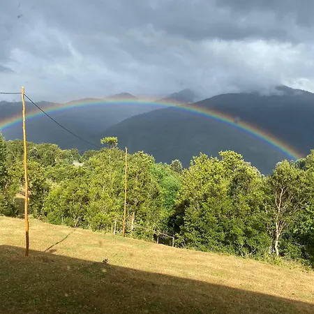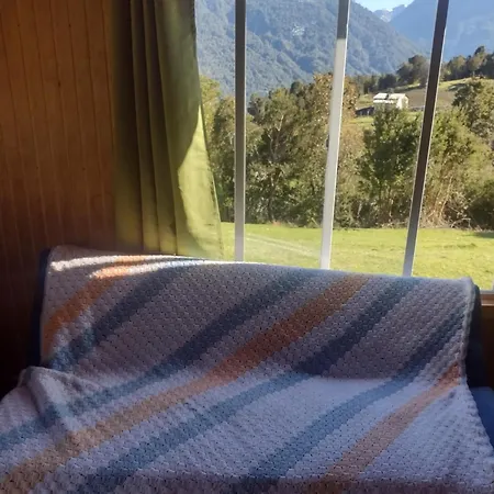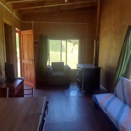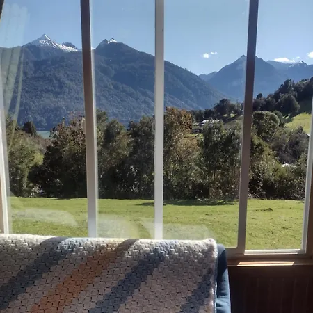 Cabana Bellavista Cochamo ligt binnen 2 km van Lago Tagua Tagua en nodigt gasten uit om te ontspannen op een terras.